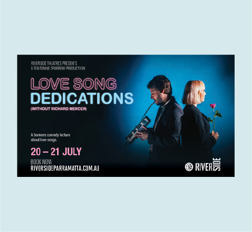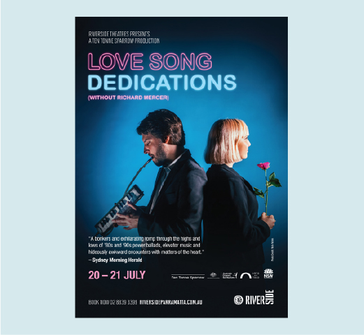 For the show Love Song Dedications (Without Richard Mercer) the title treatment resembles neon lights that are found in bars and radio stations.