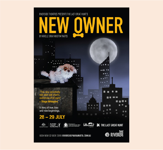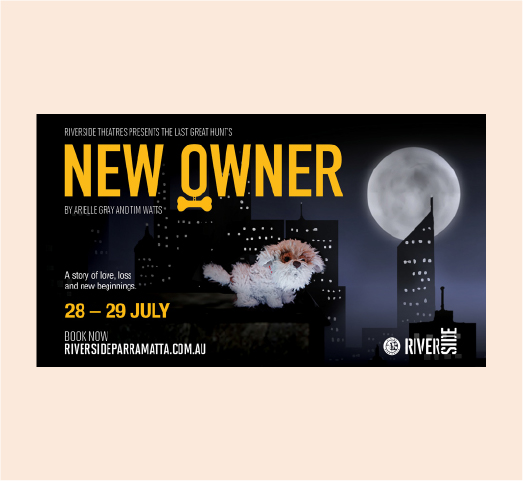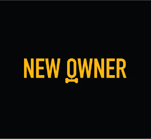 For New Owner the O in Owner resembles a dog collar with an empty dog tag to show the dog is lost and in need of a new owner.